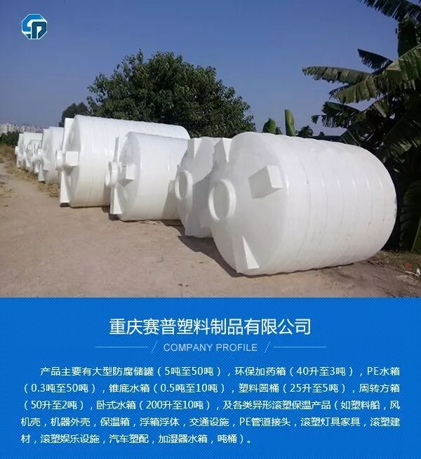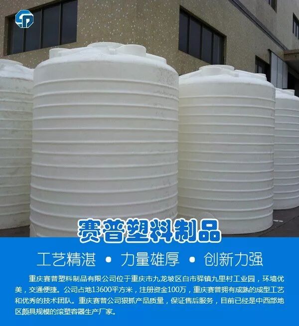 储罐应用:重庆赛普PE塑料储罐广泛用于生活用水、杂用水、农业灌溉储水、二次供水、蓄水、水处理净化设备配套、电子行业、工业用冷却水、化工制剂、化工原料、各种油品、饮品的存储、运输。