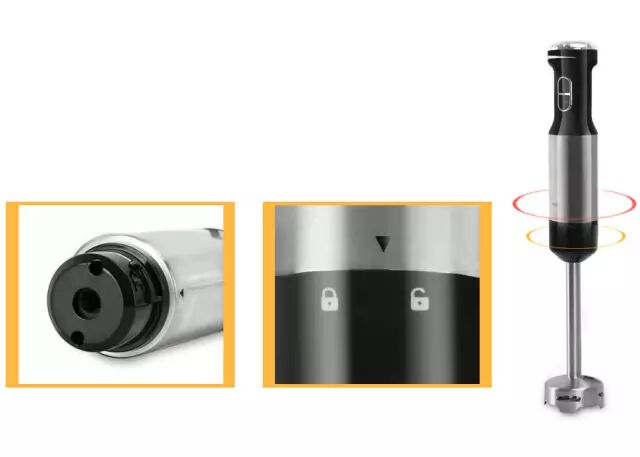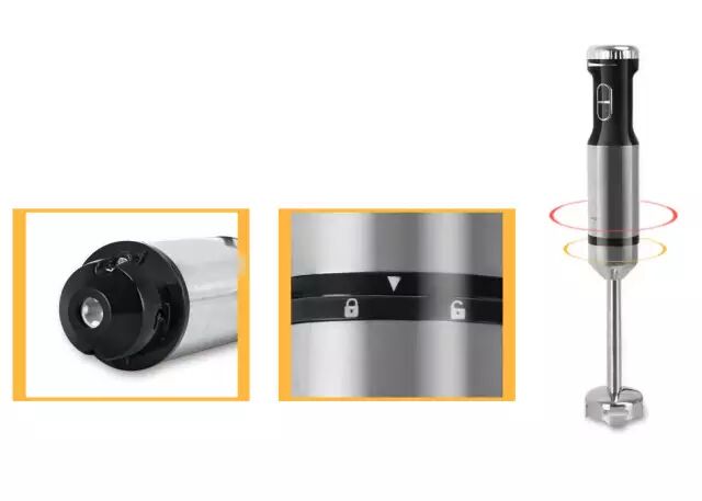 搅拌杆解锁图标对准手柄箭头位置套入,并向顺时针旋转,听到“咔嚓”一声即安装成功;将搅拌杆逆时针旋转,即可拆卸搅拌杆.