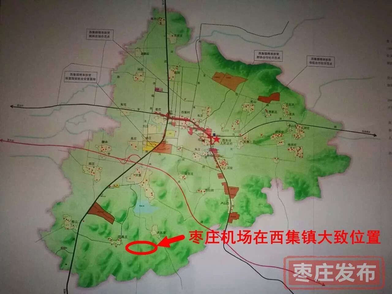 这就是位于山亭区西集镇的枣庄机场的具体位置。