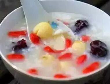 食材:泡发百合40g、莲子15g、大枣20g、糯米40g、大米60g、枸杞子10g。