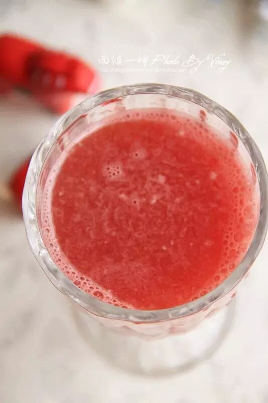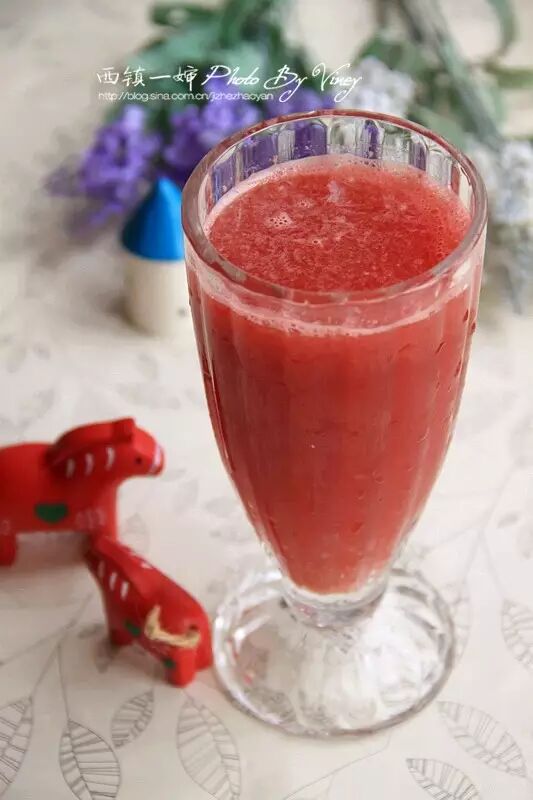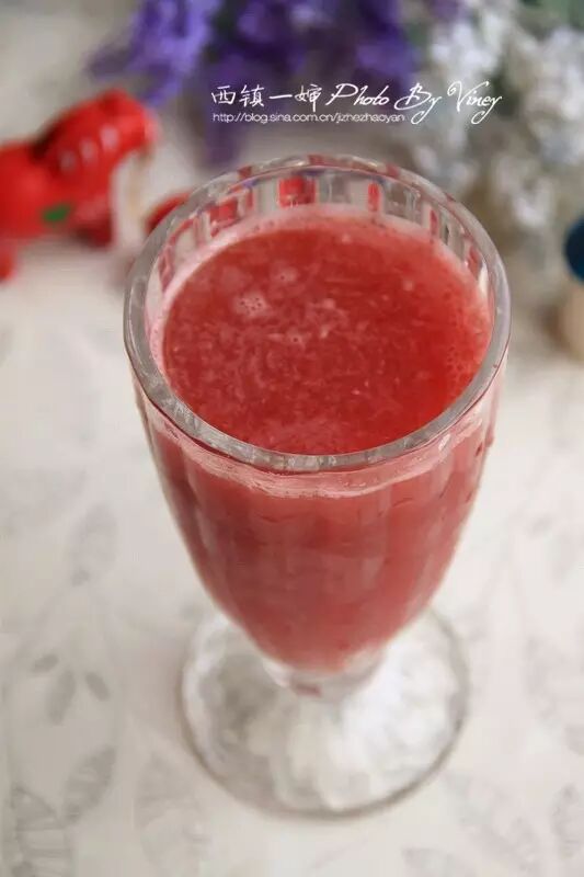 西瓜有提前冷藏过,所以一口气喝下去透心凉,相当的解暑消渴,我们家娃儿喝完一杯还不够。