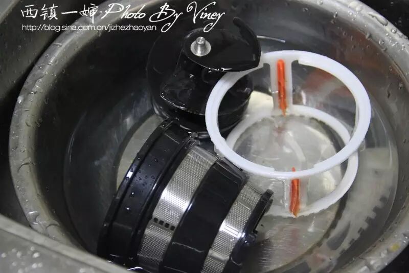 5、机器的清洗也很简单,因为婆婆家买过一款传统榨汁机,跟我吐槽过好多次难清洗的问题。相比之下,原汁机的各部分组件只要用水一冲,顶多在出渣口的部分清洗一下,就打扫完毕了。各个组件记得要晾干水分后再重新组装哈,这样可以延长机器寿命。