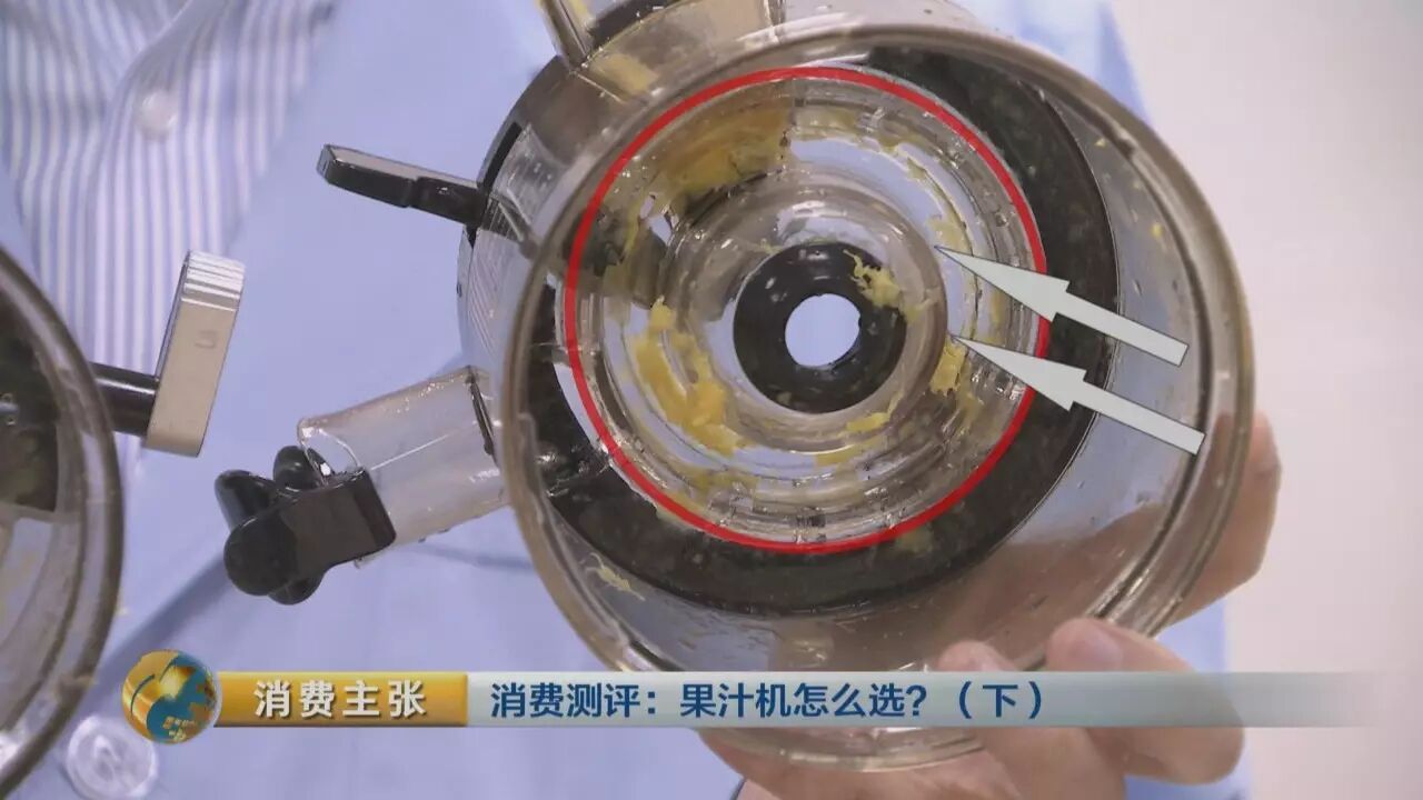 刘哲 工业产品设计师:那我们来看一看,在清洁方面可以看到,在设计上这个螺杆,中间是一个空心的设计,实际在使用中,我们可以看到,这是我们刚刚榨橙汁的情况,中间可能有各种食物的残渣,会残留在这里面,使用的时候清洁相对比较麻烦一点。