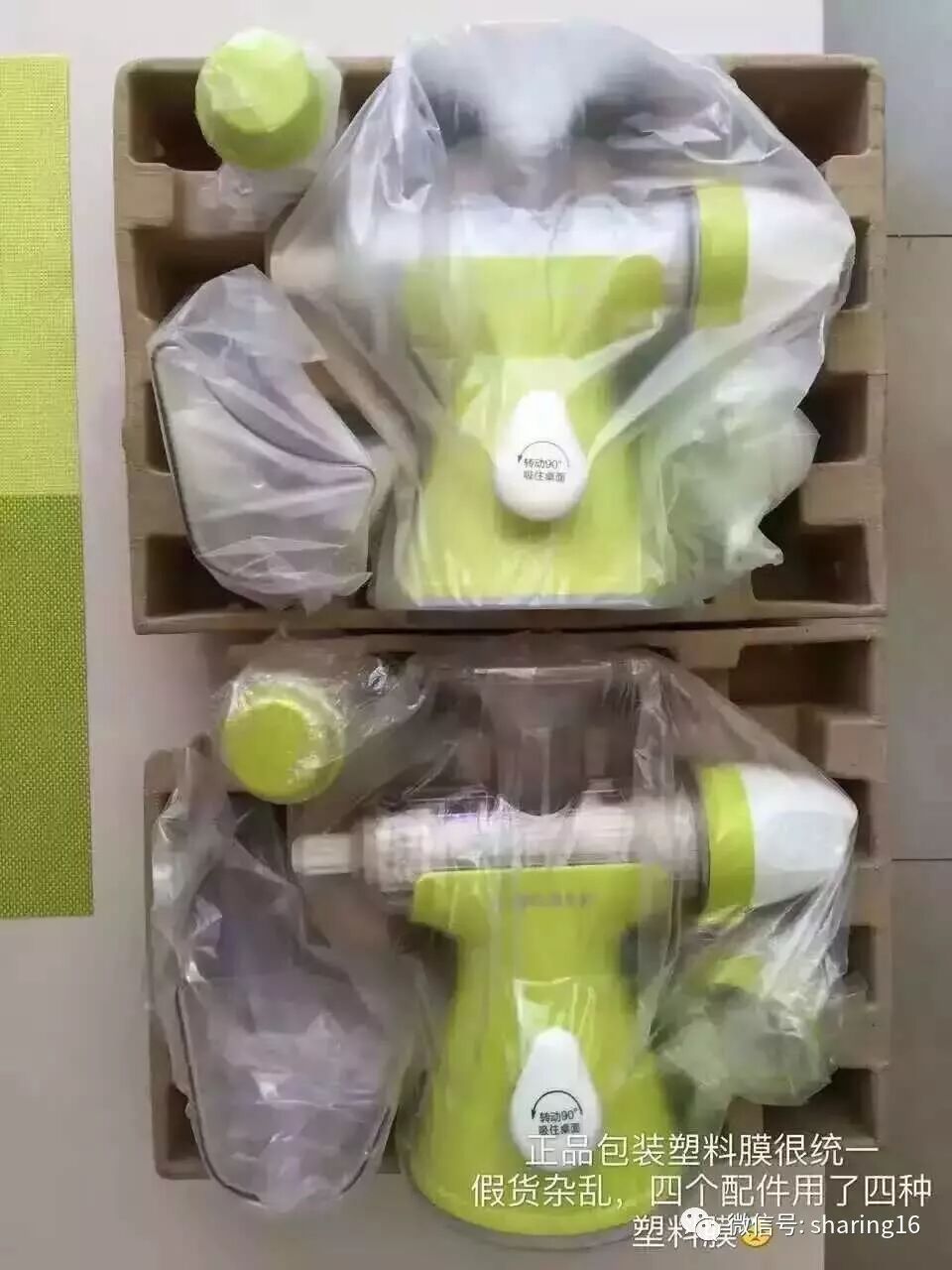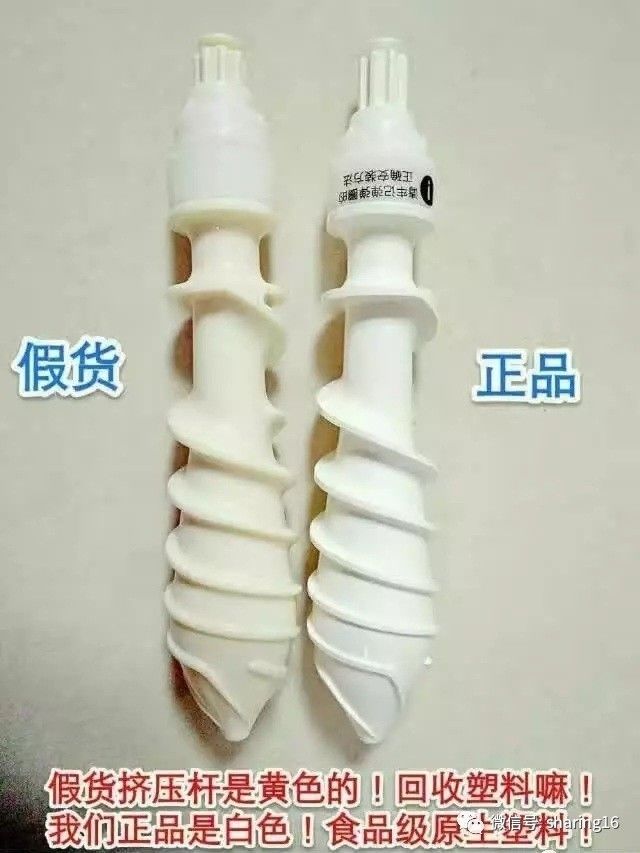 如图所示:这是果语真假原汁机果汁头安装对比: