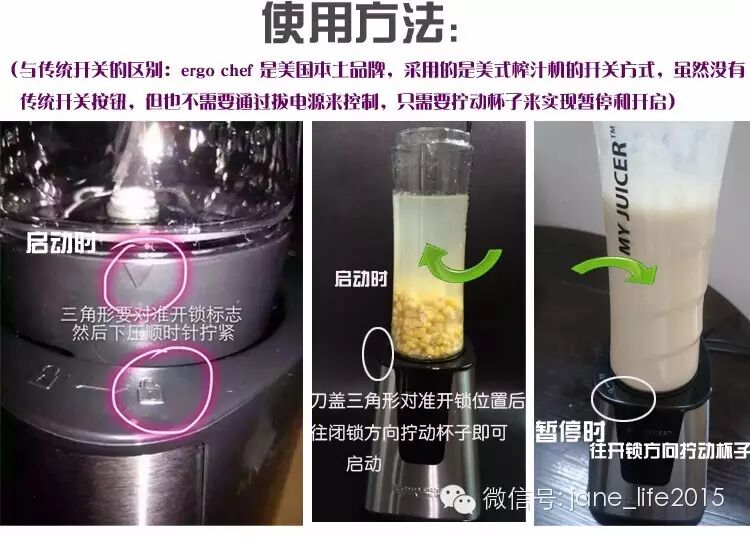 记住口诀:盖盖放进主机,一按一拧,10秒成功榨汁!!!