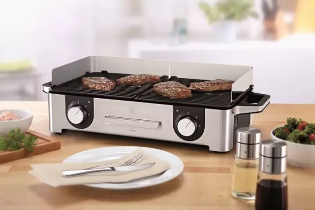 高温烹饪保留汁水,尤其是在煎烤牛排和熏肠的时候,切开一看里面都还是亮晶晶的,不会像很多产品一样烤得干到咬都咬不动。烤炉上的挡板更具有防止油污溅出的功能,大大简化了室内烧烤后的清洁工作。