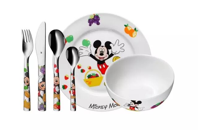 我给家里小侄女买了这套WMF米老鼠餐具就成功的在饭桌上把她给镇住了。吃饭的时候我在旁边告诉她,一定要把盘子里的东西吃光光才能看到下面有什么漂亮的图案,没想到小姑娘真的比平常吃饭好哄很多,和大人一起保持着吃饭速度乖乖把饭菜都解决掉。