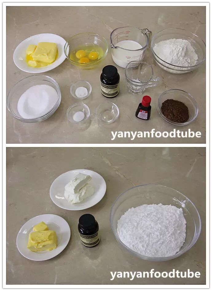 室温软化无盐黄油 / 120g奶油奶酪 / 230g糖粉 / 500g过筛香草精 / 1茶勺