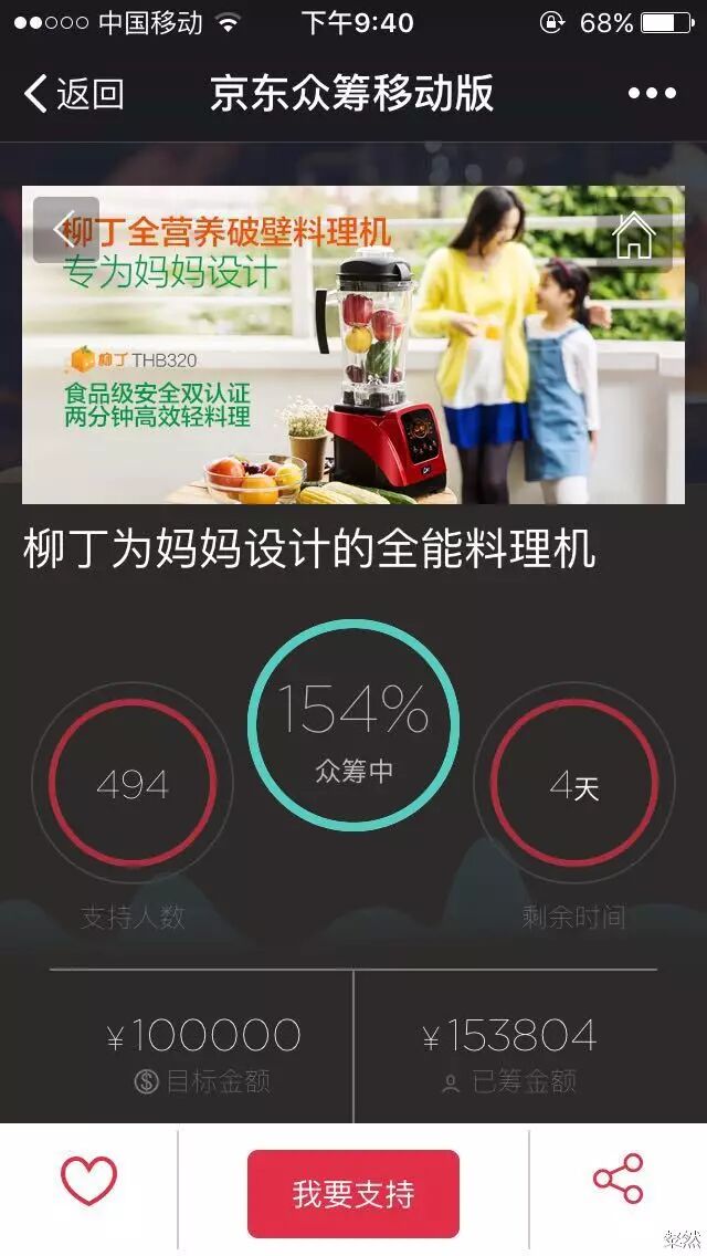 朋友是从推广维他美仕开始,跳进破壁机的大坑,团队研磨三年。近日,他们创制的“柳丁”通过京东众筹。