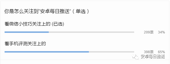 昨天进行了如何关注到“安卓每日推送”微信公众号的小调查,通过手机评测和微信小技巧的都是主要途径,其中手机的用户会更多,看来大家喜欢看评测?
