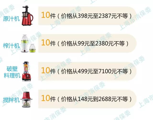 随着生活水平的提高与工作节奏的加快,人们开始注重饮食的健康与便捷,原汁机和破壁料理机作为榨汁机和搅拌机的升级产品,更是受到消费者的青睐。目前市场上这几类产品的品牌较多,卖点也较多,其差异到底在哪里。为此,上海市消保委对流通市场的原汁机、榨汁机、破壁料理机和搅拌机开展了比较试验。