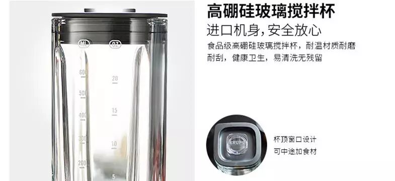以前家里的搅拌机杯身很高,而且只有一个口进出食物,每次清洗的时候都特别费劲,当遇到粘稠的食物时,必须借助长款的刷子才能彻底清理干净,有时候不注意,还会留有死角。而KRUPS的玻璃搅拌杯两边都能开口,这样在清洗的时候真的方便很多。