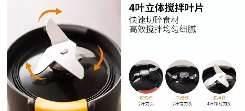 4. 三个搅拌杯不同功能,刀头设计也是不同的。