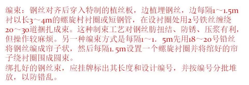 E、钢丝束镦头锚固体系在张拉过程中应随时拧上螺母,以策安全;锚固时如遇钢丝束偏长或偏短,应增加螺母或用连接器解决。
