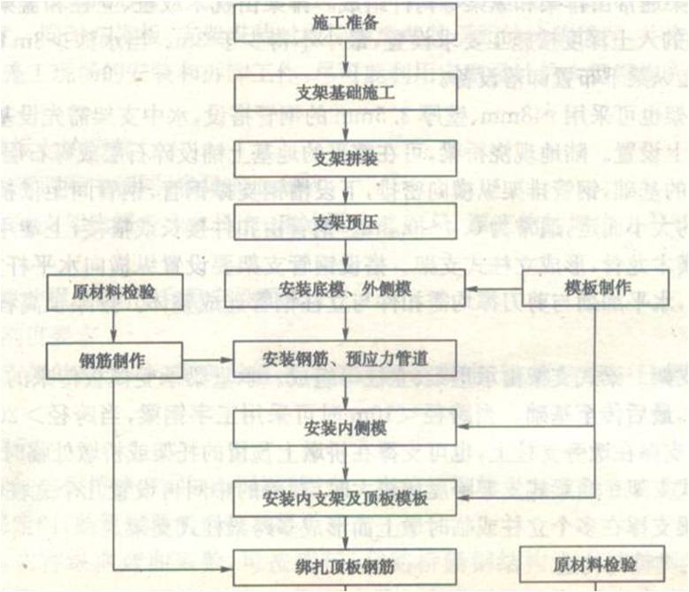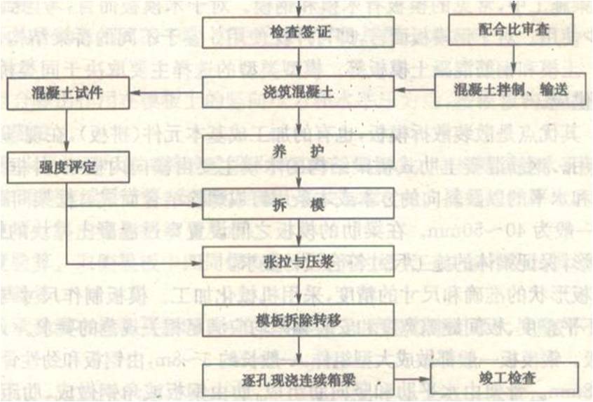 就地现浇法制造混凝土简支梁的工艺则复杂一些,制梁工艺流程如图: