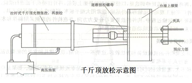 d.千斤顶回油,拆卸工具锚,换束重新安装锚具、设备。