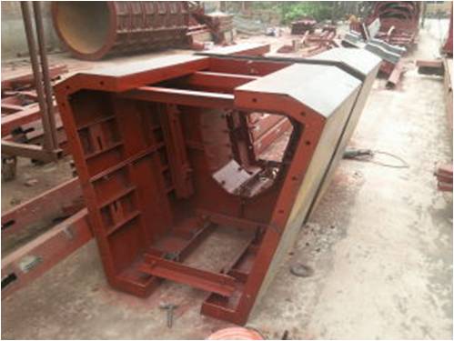 大型钢模板组件之间采用螺栓或销连接。在梁的下部,常由于密布受力钢筋或预应力钢筋,使得混凝土浇筑比较困难。因此,一般在钢模板上开设天窗,以便混凝土的浇筑和振捣。