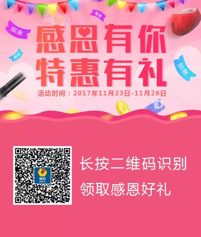 感谢大家这一年来的信任、理解、支持和陪伴,值此感恩佳节之际,惠财给大家发大礼包了!