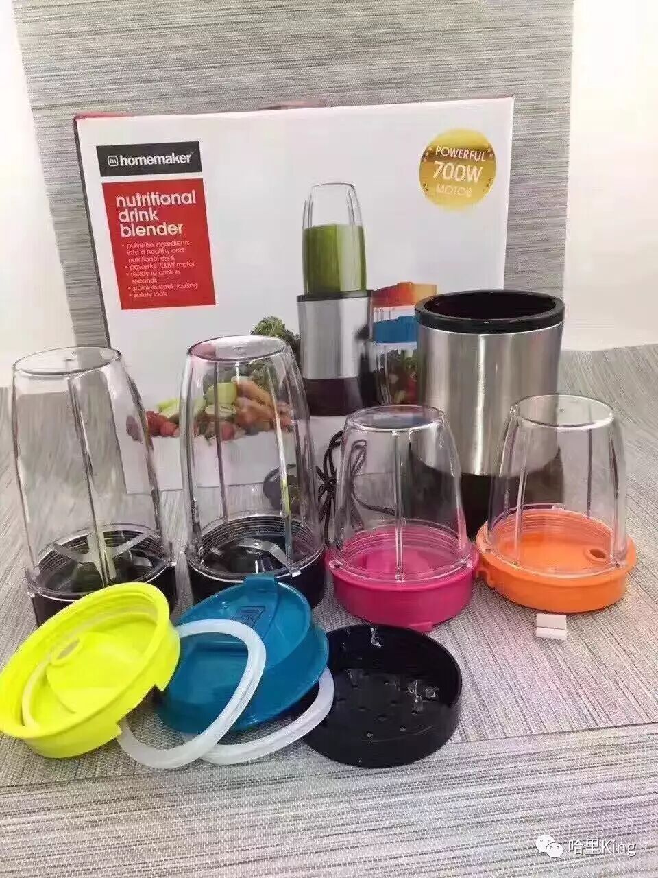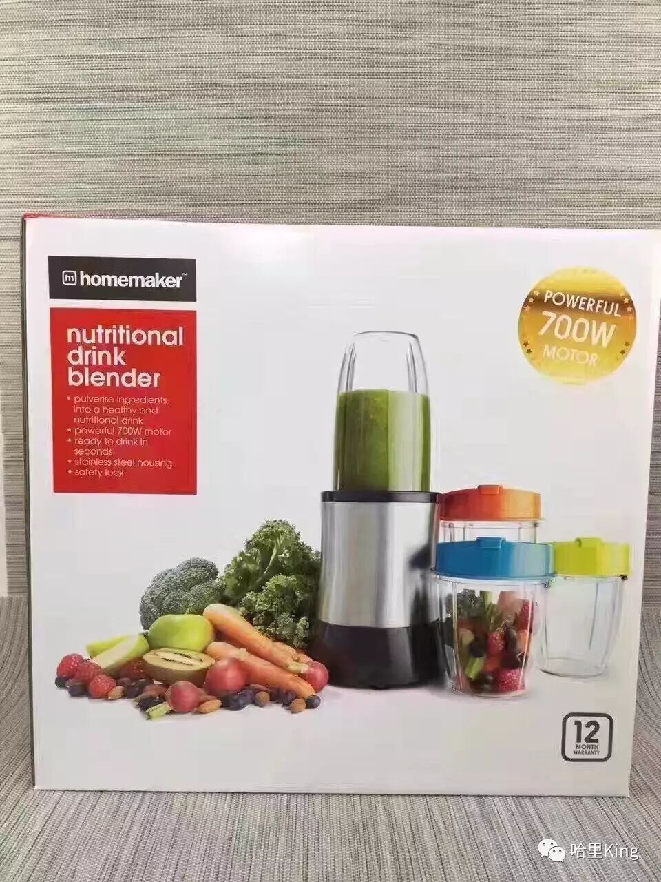 澳洲homemaker家庭主妇多功能营养搅拌器,采用美国进口Tritan塑料,不含BPA;刀片采用日本进口钢材;超细研磨,无需隔渣,榨汁、奶昔、豆浆、面膜、辅食等,10秒即成,易操作易清洗,多个备用杯让你更方便携带,通过德国TUV,GS认证,安全可靠!此品牌网站一授即有,是一款澳洲爆款榨汁机!¥280