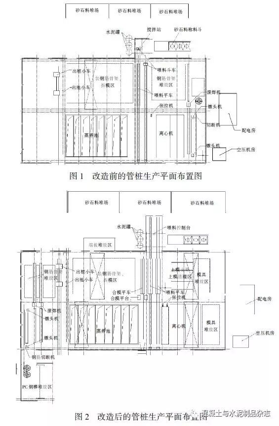 图1 和图2 分别为改造前和改造后的管桩生产平面布置图。