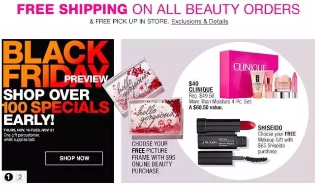 目前梅西已经开始了感恩节活动,部分服饰额外8折,现在就可以开始抢购。黑五当日,Estee lauder,Clinique, Clarins,Origins等美妆品牌都会推出黑五超值礼包$10起。
