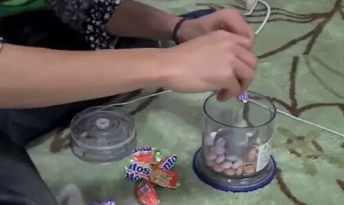 最近瞄上了经典的曼妥思放进可乐的实验(也称“沸腾可乐”),听说把曼妥思糖放进可乐会“爆炸”,这位作死小能手嫌一颗曼妥思跟可乐的接触面积太小,想用曼妥思做“朗基努斯之枪”。