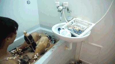 将可乐全部倒进浴缸里,然后,英勇地纵身一跳!