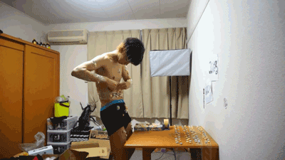 hajime在身上贴满双面胶,然后把曼妥思全部粘上去。