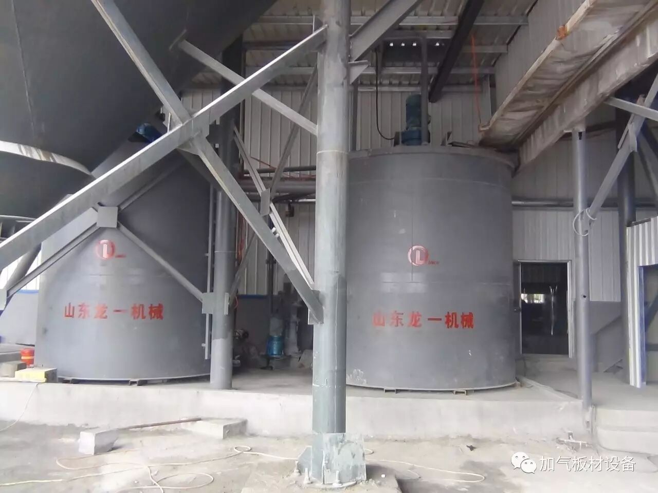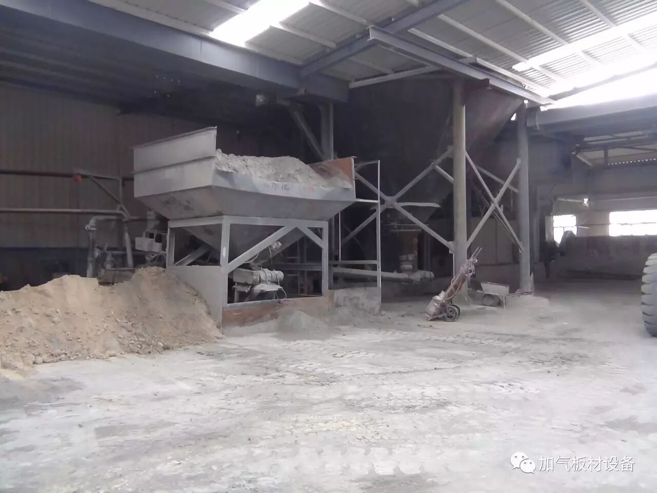购入桶装铝粉后,存放于配料楼底铝粉库内。使用时由电动葫芦吊至配料楼二楼,然后由人工计量后投入铝粉搅拌机内搅拌成5%的悬浮液备用。