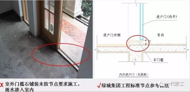 3. 窗台吃口:同一层的窗台标高不一致,为保证外饰面抹灰线条的横平竖直需拉通线找规矩,故造成窗台吃口,影响使用。首先要求结构施工时标高要正确,考虑好抹灰层厚度,并应注意窗台上表面抹 灰应伸入框内10mm,并应勾成小圆角,上口应找好流水坡度。