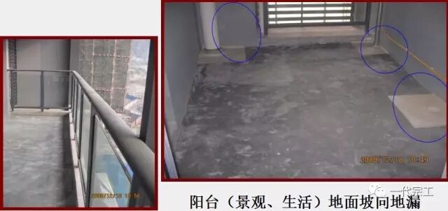 4、阳台等有地漏处的面层表面的坡度应符合设计要求,不得有倒泛水和积水现象。