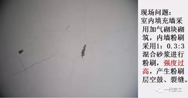 ② 一次抹灰太厚或一遍成活(干缩率较大),及各层抹灰间隔时间太短,使用过时灰。