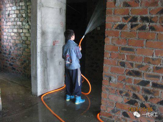 2、抹灰前将基层上的尘土、污垢清扫干净,堵脚手眼。