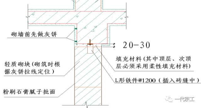 顶层、次顶层的填充墙顶与梁底交接部位,必须采用柔性填充材料。