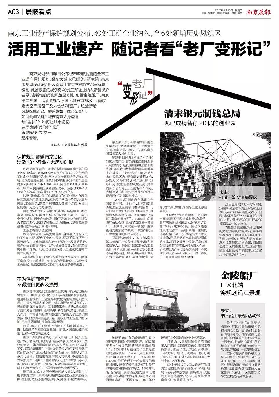 目前,国内对工业遗产的保护也越来越重视,上海、北京已经有相关工作推进。而此次南京的最新规划,也有一定的开创意义。