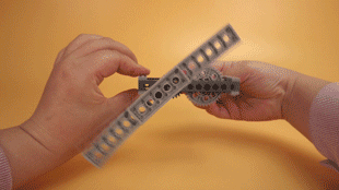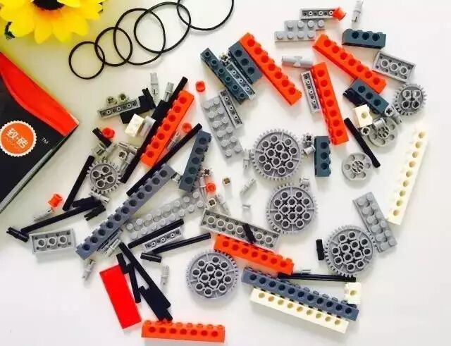 这套积木里大部分配件跟乐高是很像而且是兼容的,但是因为有了乐高没有的有齿轮、带孔砖、十字轴、皮筋科技系列零件,就可以搭建出机械和物理装置。来看看有多神奇。