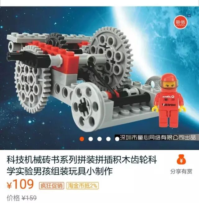 这套积木零售价格式159元,淘宝官方旗舰店暑期促销是109元: