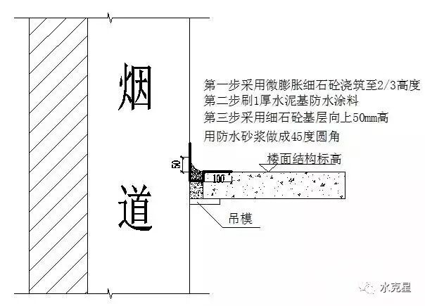 ③ 套管、烟道后塞口处防水应加强。