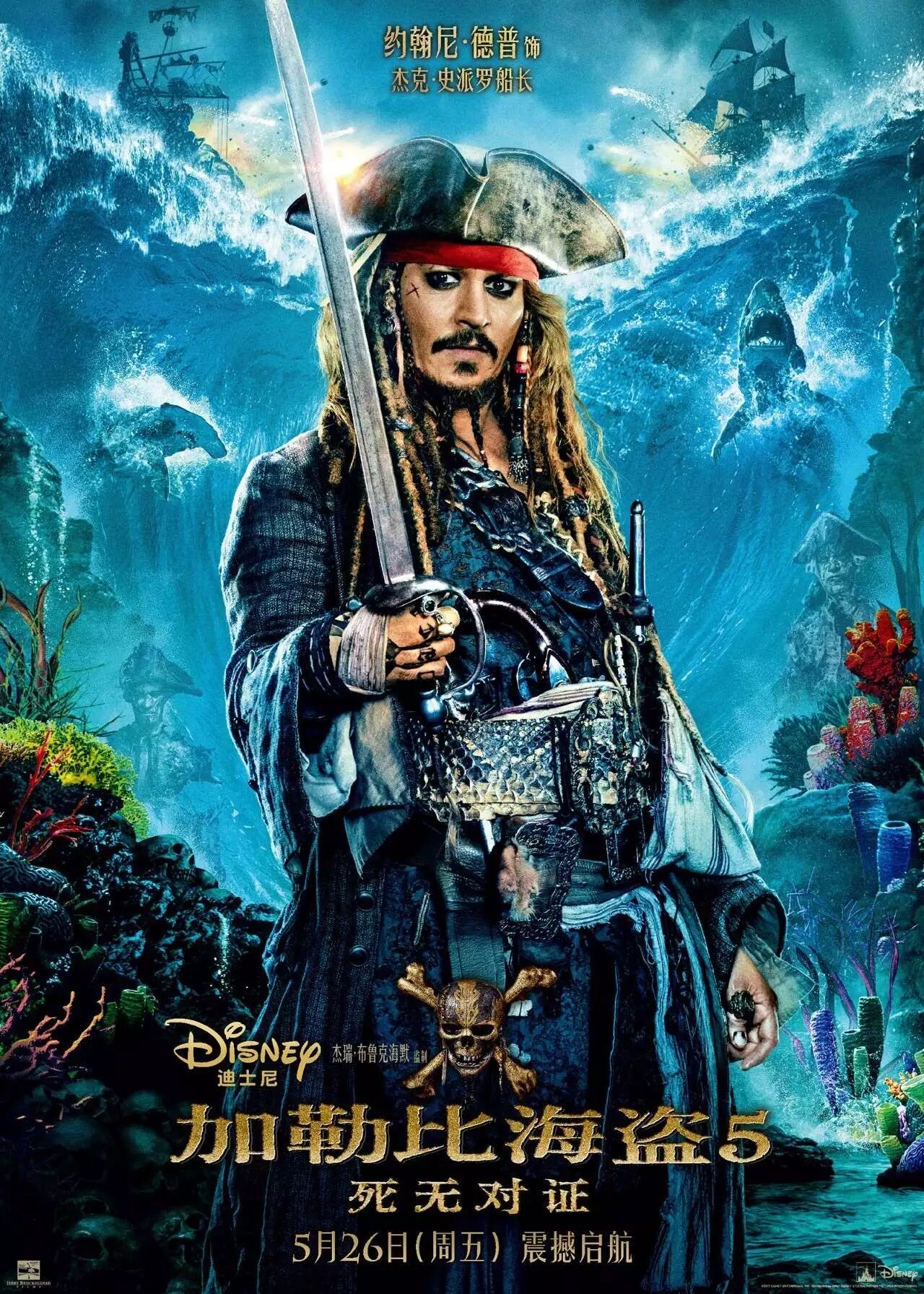 《加勒比海盗5:死无对证》将于2017年5月26日在中国及美国各大影院上映。