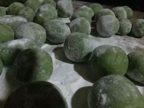 我是五谷不分的人,从小只知道读书便是,从来不晓得如何去分辨蒿青和其他草有何区别,也不晓得当选用蒿青的哪一部分入料,更不知道是将蒿青捣出汁或者煮出汁和面粉。我不知道糯米粉与小麦粉应该以什么样的比列混合,我知道在主妇们揉面团的过程中,蒿青是被不断加进面团的,于是,揉着揉着,面团就成了漂亮的绿色。