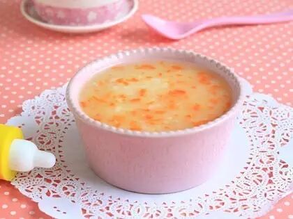 做法:1、排骨过水,去味去血水,烧好热水入生姜备用,放入已过水的排骨,加入食盐,大火烧开后,转文火慢炖30分钟左右。 2、加入山药,胡萝卜。 3、炖煮15分钟。取山药胡萝卜捣烂。 4、备好白米稀饭一小碗。加入稀饭,视情况加入些排骨汤,煮开。搅拌均匀即可。