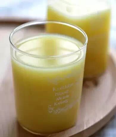 5、将榨好的果汁倒入杯子里马上饮用。