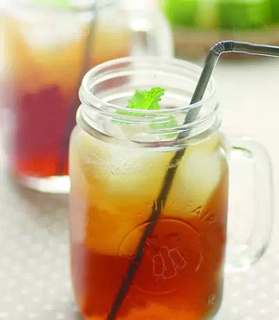 8、薄荷糖浆取100ml放入红茶中,水果放入红茶中,冷藏饮用口味更佳