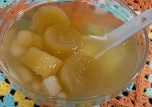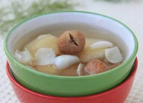 做法:将荸荠30克洗净去皮捣烂,雪梨一个洗净连皮切碎去核,百合1克洗净后,三者混合加水煎煮,后加适量冰糖煮至熟烂汤稠。