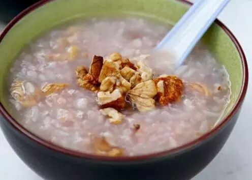 食材:白果仁5克、甜杏仁10克、胡桃仁10克、粳米50克。