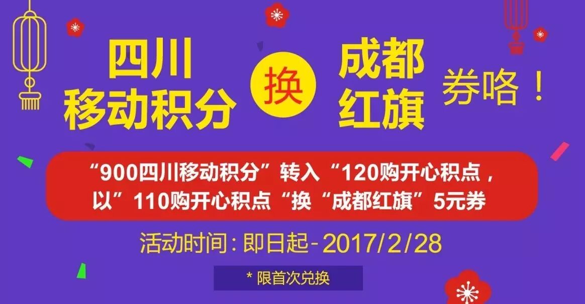 点击阅读原文,用四川移动积分兑换成都红旗券!