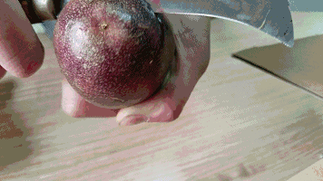 取成熟的百香果,洗净切开,直接食其果汁;也可放些糖,用汤匙搅拌后食用。种子香脆可食,营养丰富似葵瓜子。