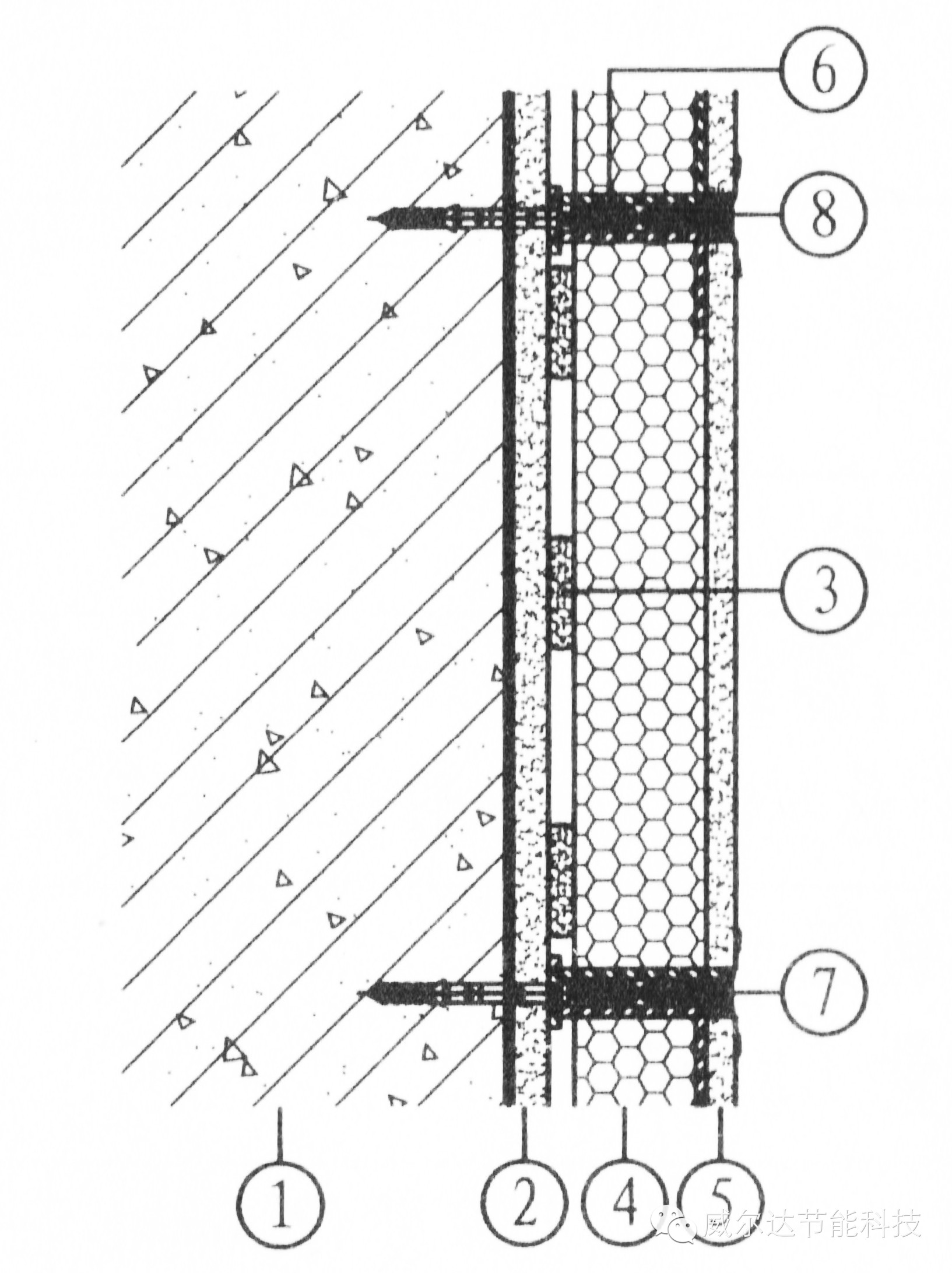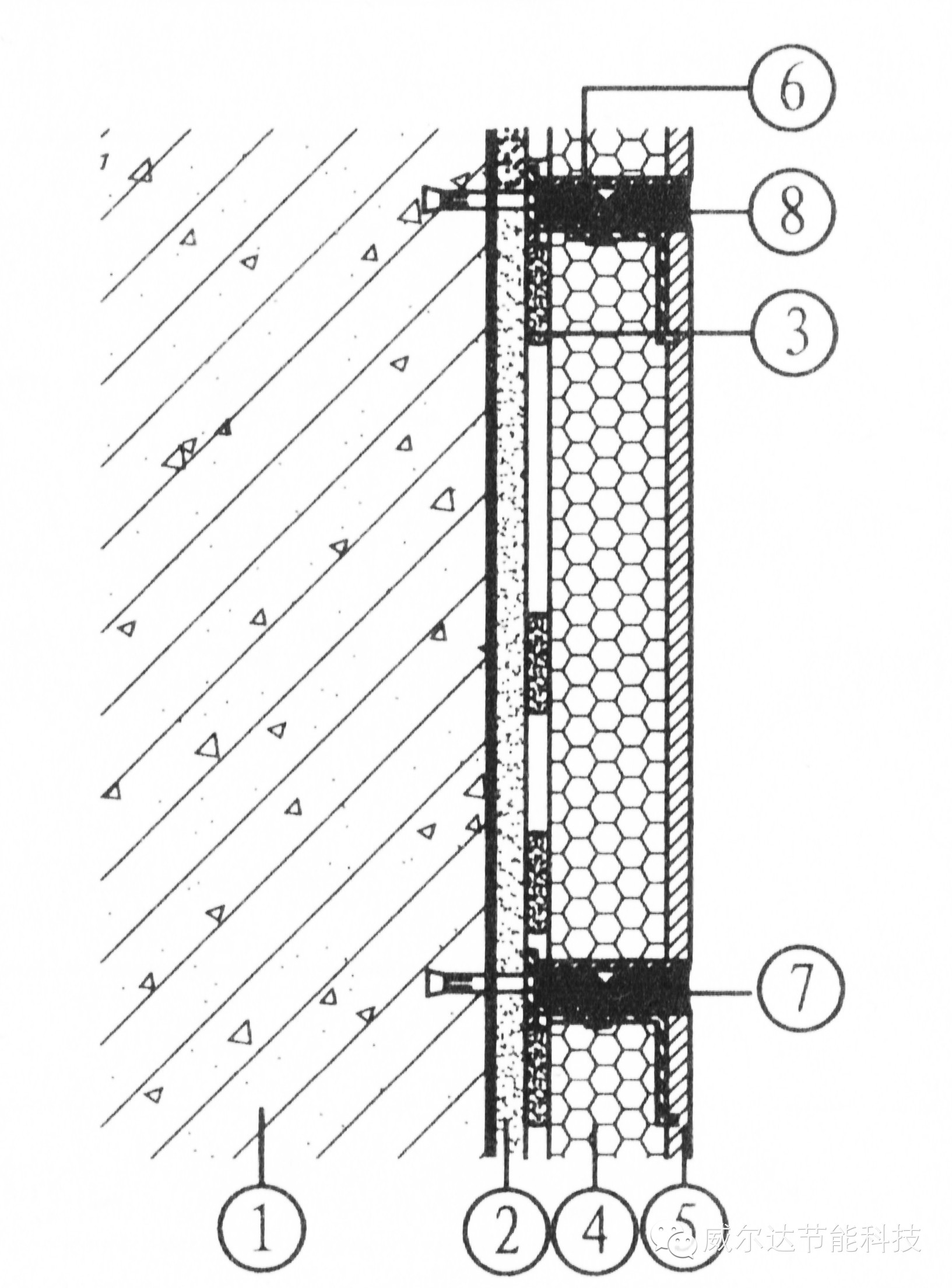 保温④ 装饰板⑤ | 保温材料(硬泡聚氨酯等) 薄石材、陶瓷装饰板 | ||